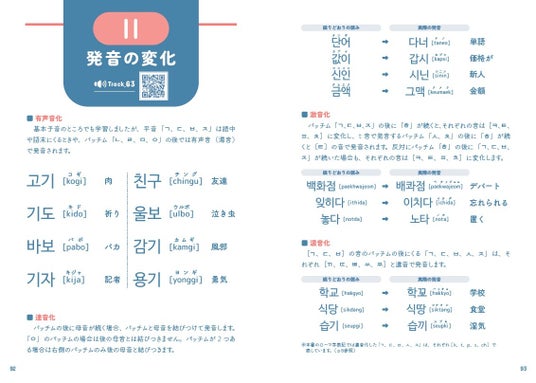 本書ではローマ字読みを参考に二次元コードで再生できるDL音声を聴くことで、一人でも発音練習が可能です。さらにハングルをなぞり書きをしながら、練習問題にもチャレンジ!「読む」「書く」「聞く」の3つのステップで簡単に韓国語をマスターできます。