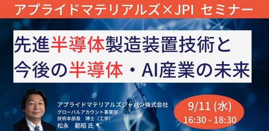 JPI(日本計画研究所)は、アプライドマテリアルズジャパン株式会社 グローバルアカウント事業部 技術本部長 博士(工学) 松永 範昭 氏を招聘し、今後の半導体・AI産業の未来について詳説いただくセミナーを開催します。