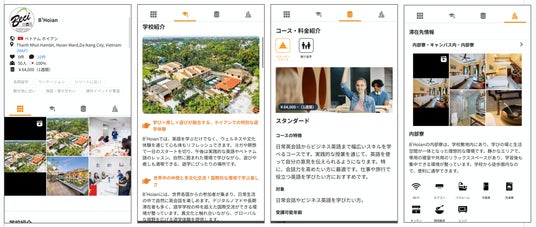 ネイティブキャンプ留学では、ユーザーが必要な情報を分かりやすく把握できるよう、常に丁寧で明確な情報提供を心がけています。B’Hoianの詳細情報は、以下の4つのカテゴリーに分けて掲載しており、知りたい情報を的確にお届けします。