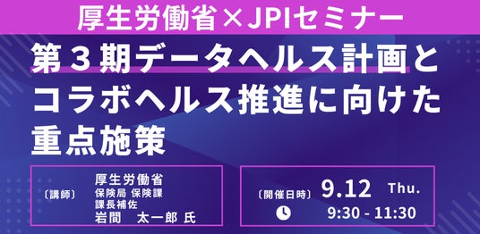 JPI(日本計画研究所)は、厚生労働省 保険局 保険課 課長補佐 岩間 太一郎 氏を招聘し、第3期データヘルス計画について詳説いただくセミナーを開催します。