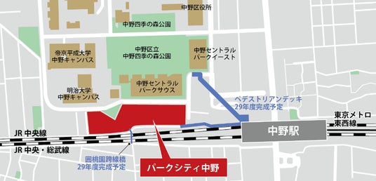 三井不動産レジデンシャル株式会社(本社:東京都中央区、代表取締役社長:嘉村 徹、以下「三井不動産レジデンシャル」)および三井不動産株式会社(本社:東京都中央区、代表取締役社長:植田 俊、以下「三井不動産」)は、囲町東地区第一種市街地再開発組合の一員として中野駅北口にて開発を推進してまいりました、中野エリア最大級のミクストユースプロジェクト「パークシティ中野」(以下「本事業」)が2026年4月25日(土)に竣工したことをお知らせします。