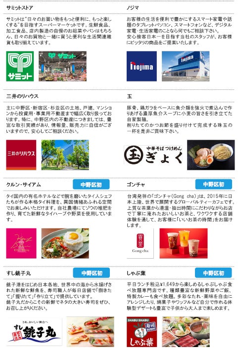 ■中野エリア初出店を含む多彩なテナント構成