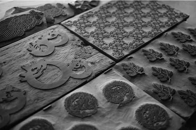 天平時代の香りが漂う雄大な雲魂を細い尾で連結した連雲は、吉祥をもたらす瑞雲。雲は雨を呼ぶことから実りと豊穣を表し、良き事を呼び寄せ、運気上昇を願う。江戸時代から伝わるこの文様の板木は、唯一無二の歴史の価値を表しています。