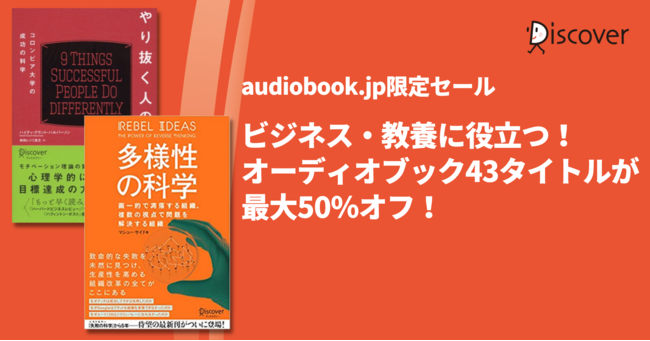 3/1よりaudiobook.jpにて、ディスカヴァーのオーディオブックが半額になるセールを開催中です。ビジネスや教養に役立つ書籍を中心とした、ディスカヴァーのオーディオブック43タイトルが最大50%オフになる割引キャンペーンです。