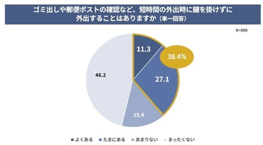 ■約4割がゴミ出しや郵便ポストの確認など、短時間の外出時に鍵をかけていないことが判明
