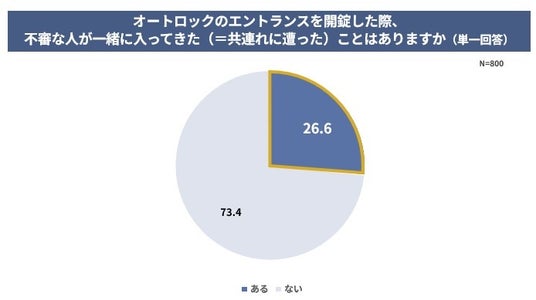 ■4人に1人がオートロックのエントランス開錠時に不審者が後ろから侵入する“共連れ”を経験し、オートロックでも過信できない現実が浮き彫りに