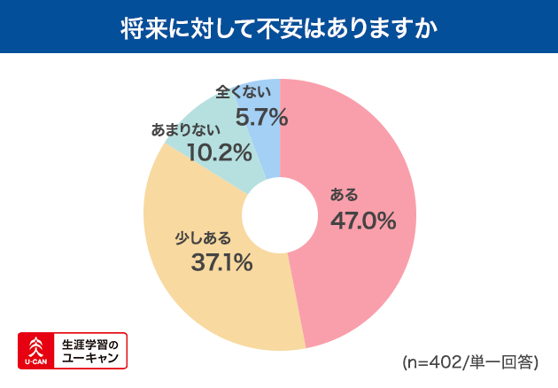 国際治安の悪化や止まらない物価高騰など、大きな社会問題が目立った2022年。「将来に対して不安はありますか」という質問に対して、「ある」と答えた人は全体の47.0%、「少しある」と答えた人は37.1%、「あまりない」が10.2%、「全くない」が5.7%と、全体の8割以上が将来に対して不安があると回答しました。