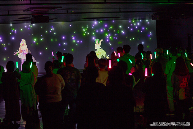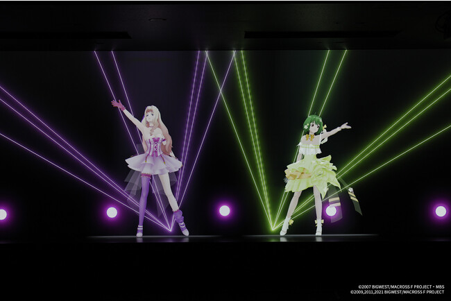『マクロスF ポップアップステージ』は、“銀河の妖精”シェリル・ノームと“超時空シンデレラ”ランカ・リーが、等身大の3DCGで目の前に登場し、公演を行うステージです。披露する楽曲の一部は、その公演に参加しているお客さまの投票によって決まるため、公演ごとに変化するライブ体験を楽しめることが特徴です。「憧れの歌姫に会いたい」が叶う体験をご期待ください。