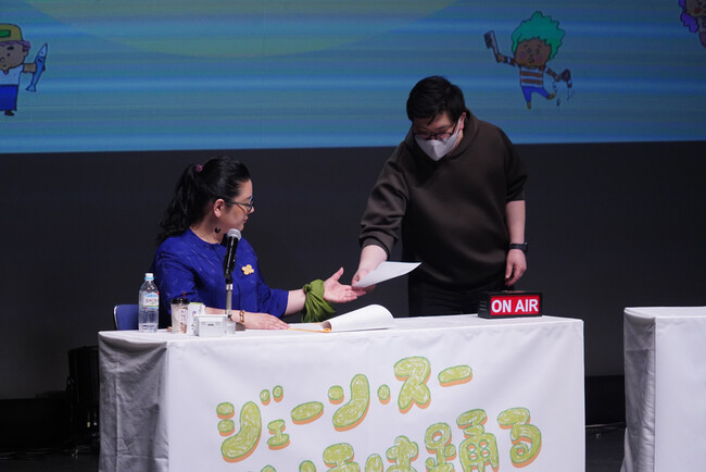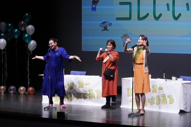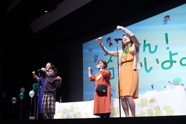 その後は、当番組プロデューサーの刈屋が歌う「ぶんぶんぶん」や番組テーマソングに合わせ親指小指運動を会場全員で挑戦。