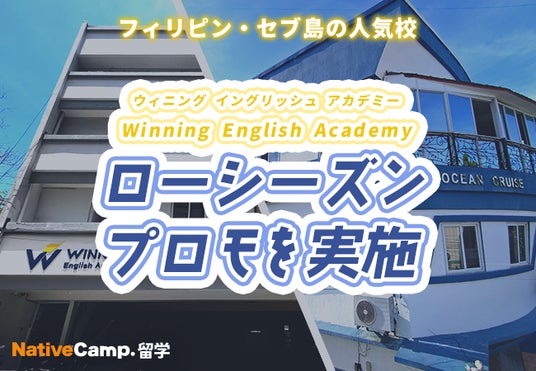 ネイティブスピーカーと回数無制限のオンライン英会話サービス「ネイティブキャンプ英会話」を展開する株式会社ネイティブキャンプ(東京都渋谷区 代表取締役: 谷川国洋)は、海外留学エージェントサービス「ネイティブキャンプ留学」において、フィリピン・セブの人気校「Winning English Academy」にて、ローシーズンプロモを実施いたします。