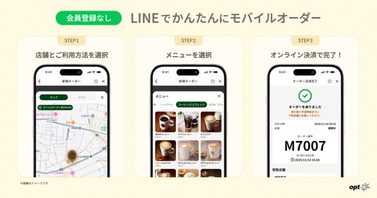 「選ぶ・払う・受け取る」がLINEひとつで完結。迷わない操作性で、スムーズかつ快適なカフェ体験を実現