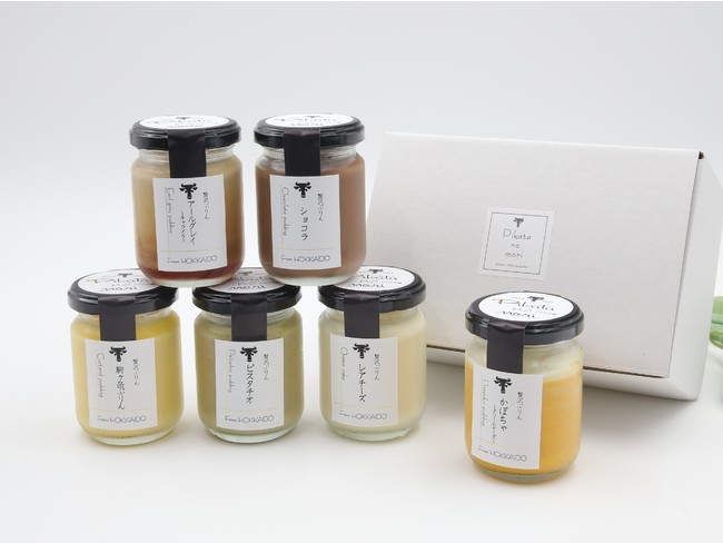 道南の牧場で大切に育てられた牛の牛乳を使ったプリン。定番の味から、キャラメルソース入りのアールグレイ味やとっても甘い北海道みよい農園の“くりりん”かぼちゃを使ったかぼちゃ味まで、6種類をご用意。