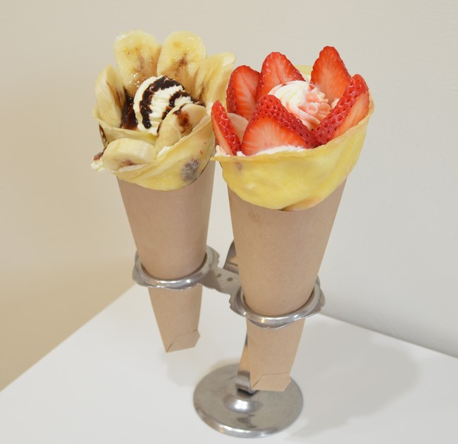「みるくsan」みるくのクレープ〈いちご〉(1個)901円、〈チョコバナナ〉(1個)801円