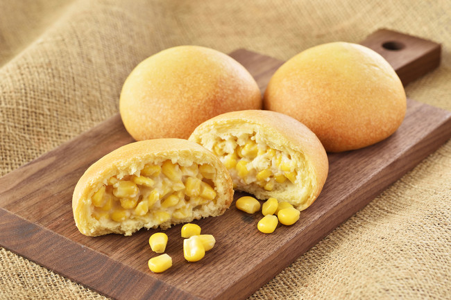 北海道産小麦粉を100%使った、もちもち食感のパン。割ると、甘みが濃厚な“十勝スーパースイートコーン”が驚くほどぎっしり。