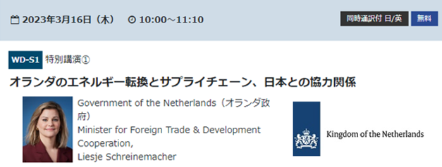 オランダのリーシェ・シュライネマッハオランダ外国貿易・開発協力大臣は、日本とオランダの長い共同研究の歴史、オランダのエネルギー移行政策、安全で持続可能な未来に向けた協力の重要性について詳しく説明する。