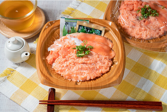 2023年8月に、サーモンをスライスする製造工程で出た切り落としを有効活用した海鮮丼「サーモン三昧丼」を発売しました。トッピングのサーモンの一部に、ファミリーマートで販売している寿司「サーモンづくし」を製造する際に出る切り落としを活用し、食品ロスの削減に繋げました。