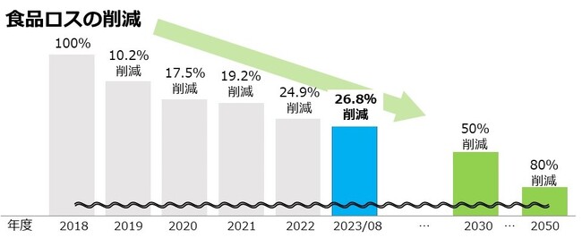 株式会社ファミリーマート(本社:東京都港区、代表取締役社長:細見研介)は、2023年8月までの店舗における食品ロスの削減率が、2018年度対比で約27%となりましたのでお知らせいたします。現在9割以上の店舗で実施している店舗値下システム「ファミマのエコ割」や、特殊な包装技術を活用した商品の消費期限延長の取り組みなどが奏功しております。