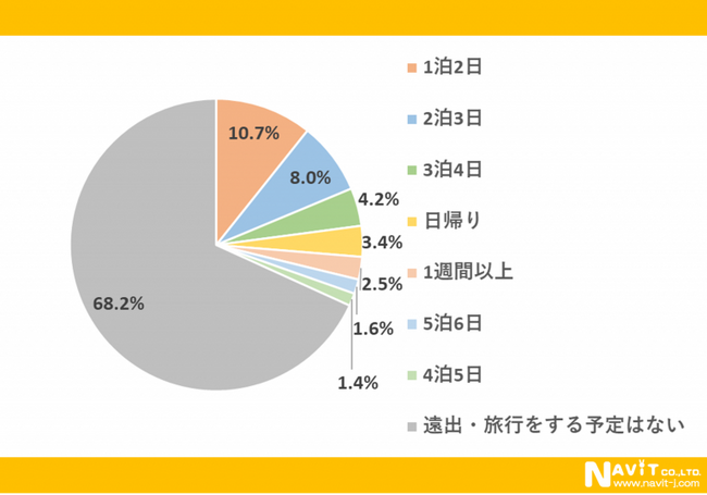 「何泊する予定ですか?」という質問については、「1泊2日」が10.7%、「2泊3日」が8.0%、「3泊4日」が4.2%という順になりました。短い日数で楽しむ方が多いようですね。