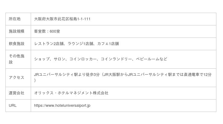 目の前にユニバーサルシティポートを臨み、パークまで歩いてすぐという素晴らしいロケーションにあるユニバーサル・スタジオ・ジャパンのオフィシャルホテル。「ORIX HOTELS & RESORTS」のグループホテルであるホテル ユニバーサル ポートでは、「楽しさいっぱいの世界へつながる、港でありたい。」をテーマに、たくさんの笑顔が溢れるひとときをお届けします。