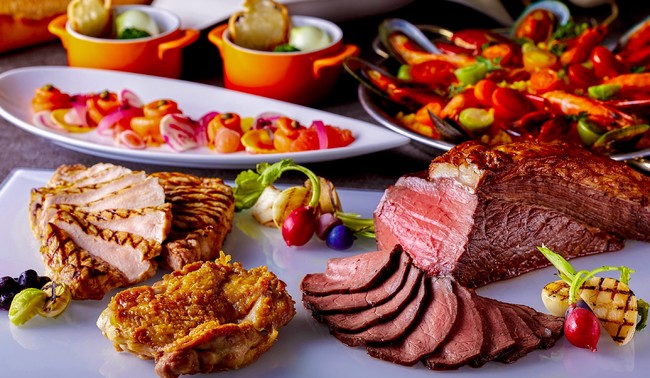 本フェアのおすすめは、ライブキッチンでシェフが目の前で焼き上げる「ビーフステーキ」&「ローストビーフ」。いずれも大人気の看板メニューが、ランチ・ディナー問わず毎日登場するのは今だけの期間限定です。