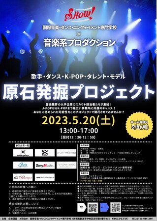 NSGグループの国際音楽・ダンス・エンタテイメント専門学校が音楽系企業を招聘した原石発掘プロジェクトを2023年5月20日(土)に実施しますのでお知らせいたします。