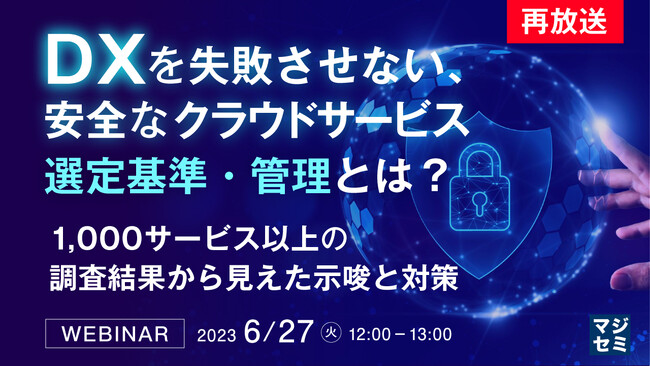 マジセミ株式会社は「1,000サービス以上の調査結果から見えた、安全なクラウドサービス選定基準」というテーマのウェビナーを開催します。