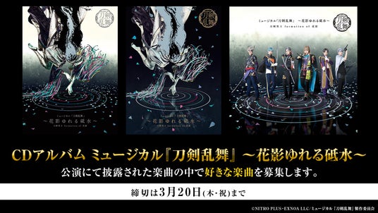 「CDアルバム ミュージカル『刀剣乱舞』 ~花影ゆれる砥水~」の楽曲の中で好きな楽曲をユーザーの皆さまから募集します。
