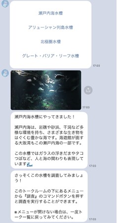 ▼「海なぞ水族館」のLINE公式アカウントから遊びたい水族館を選ぶと、専用のゲームアカウントで謎解きをプレイすることがきます。
