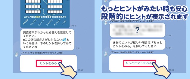 ▼全ての謎にヒントが設定されているので、謎解きに自信がない方でも安心してお楽しみいただけます。