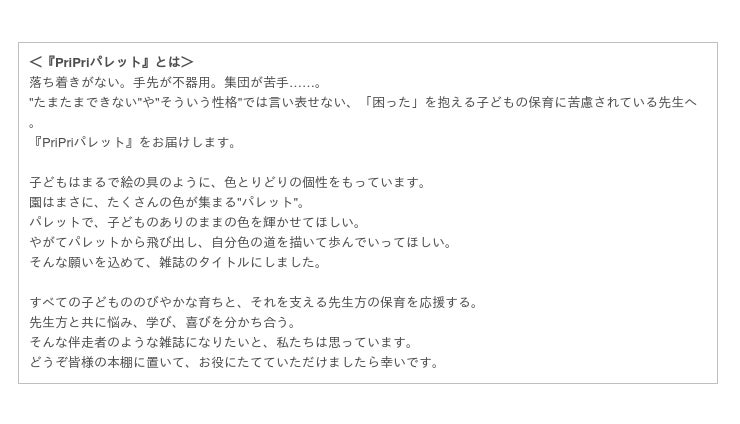 保育業界"初"! 発達に課題のある子の保育に特化した、発達支援の定期誌『PriPriパレット』が誕生します。