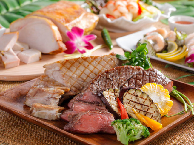 見た目も味もインパクトのあるボリューム満点なスタミナメニューをご提供します。シェフが目の前で焼き上げる実演コーナーの「ビーフステーキ」を始め、しっかりとにんにくの効いた「チキンハラミと野菜のガーリックソテー」でクールな夏をお楽しみください。