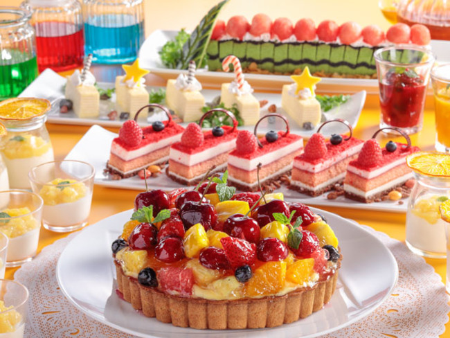デザートコーナーは、アメリカンチェリーやキウイ等、旬のフルーツを使った「フルーツタルト」やスイカ風味のクリームの入った見た目も本物そっくりな「スイカロールケーキ」が登場。また期間限定で、いろいろなシロップやソフトクリーム等を自分でアレンジできる「かき氷」も登場します。