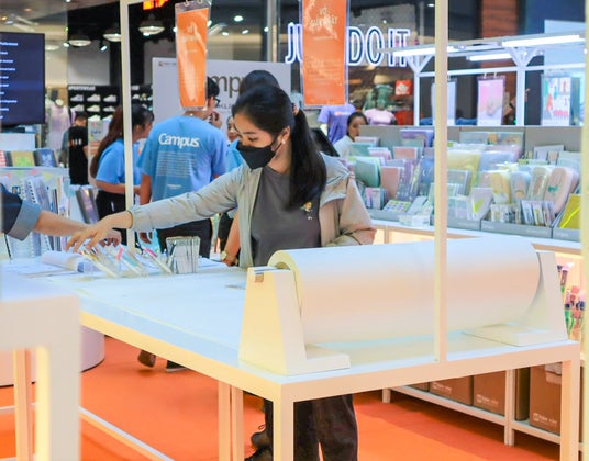 日本で人気の「キャンパス50周年記念限定アイテム」をはじめ、なめらかな書き心地と速乾性が特長の筆記具「Campus Gel Pen(キャンパス ゲルペン)」、日本生まれの原紙に罫線をベトナム仕様に仕立てた「ジャパンペーパーシリーズ」、地球の色をキーカラーに取り入れたシックなあしらいで学生に人気の「Earth Colors(アースカラーズ)シリーズ」などノートだけではない総合文具メーカーならではの商品を取り揃え、約400品番を販売します。