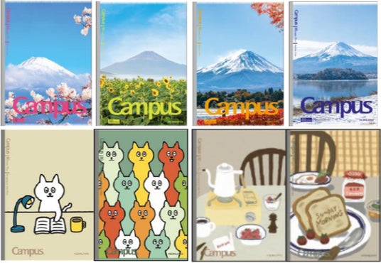 日本生まれのキャンパスノート原紙に罫線をベトナム仕様に仕立てたシリーズです。どのタイプの筆記具でも快適な書き心地を実現するキャンパスノートの特長はそのままに、表紙には美しい四季の富士山の風景をあしらったものや、学生に人気のイラストレーターシリーズなどを取り揃えています。