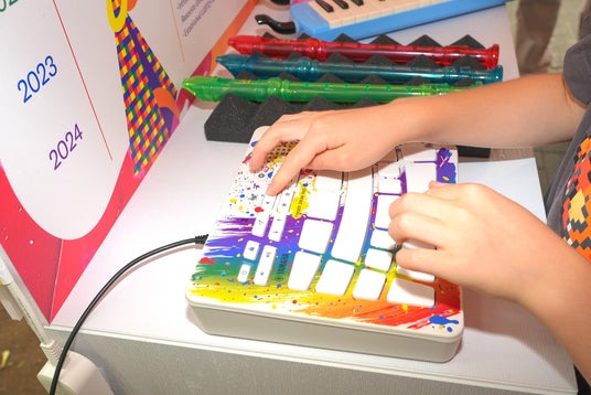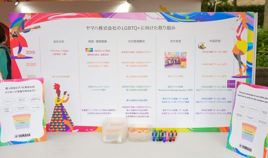 3年連続で、6月に東京・代々木公園で開催された「東京プライド2025」にブースを出展しました。「Sound and Music is for everyone(音・音楽はみんなのもの)」をスローガンに、レインボーカラーに彩られた特別仕様の楽器を展示し、多数の来場者に演奏していただきました。さらにプライド月間中の6月には「ヤマハサウンドクロッシング渋谷」でも関連キャンペーンを実施しました。