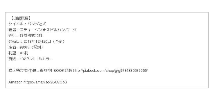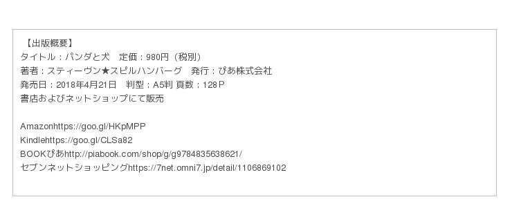 スティーヴン★スピルハンバーグ初書籍『パンダと犬 』