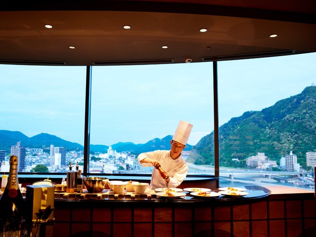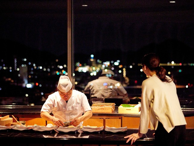 ホテル最上階にあるスカイバー「エステラ」を新たな営業スペースとしてプライベートルームにリニューアル。抜群の眺望を誇る同スペースでは、料理を和・洋・中・鮨からお選びいただけ、各料理長、鮨の板前が特別料理をご提供します。料理の合間や仕上げには料理長がお席に伺うなど、ランチ、ディナーとも1日1組限定のプライベート空間ならではの雰囲気で寛ぎのひとときをお過ごしいただけます。またお飲み物はシャンパンやワイン、地酒などお好みに応じて料理とともにお楽しみください。8月20日(土)の営業開始に先立ち、7月11日(月)から予約を開始します。