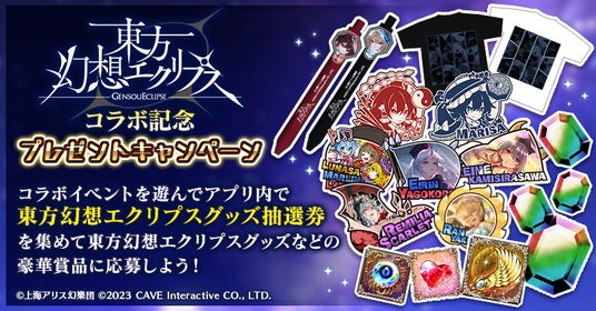 コラボイベントに参加することで手に入る「東方幻想エクリプスグッズ抽選券」を集めると、Tシャツなど様々な賞品が当たるキャンペーンに応募することができます。