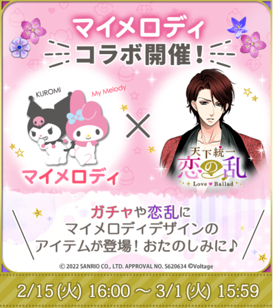 本キャンペーンは当社恋愛ドラマシリーズ「ボル恋」3タイトルとサンリオキャラクターズがコラボ企画を行うイベントです。昨年もコラボを実施し多くのお客様にご好評いただきました。今回コラボする、第2弾ボル恋タイトルは「天下統一恋の乱 Love Ballad」です。コラボを記念したログインボーナスはもちろん、