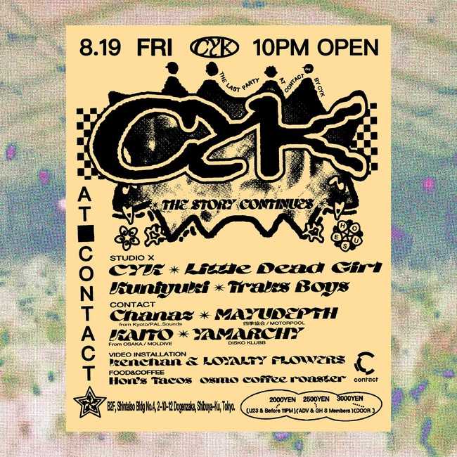 2022年に、Rainbow Disco ClubやFUJI ROCK FESTIVAL等に出演しエポックメイキングな体験を経たCYKが、出自であるナイトクラブに帰還する。昨年の11月振りにContactにて開催。9月のクローズを目前にした同ベニューでの最後のCYKとなる。