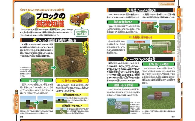 Switch版の特徴/ワールドの作成と管理/操作方法と画面の見方/友達と一緒に遊んでみよう/ブロックの基礎知識/レッドストーンの基礎知識/簡単に作れる論理回路
