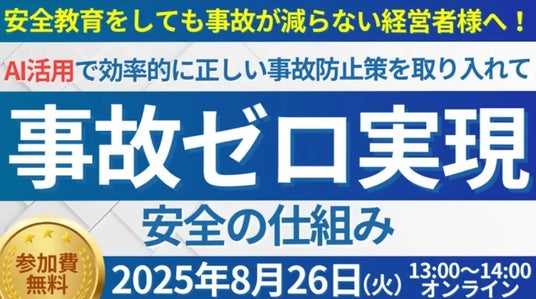日本最大級の物流コンサルティングファーム 船井総研ロジ株式会社(本社:東京都中央区、代表:橋本直行、以下「船井総研ロジ」)は、2025年8月26日(火)13:00~14:00、 運送会社・物流会社の経営者を対象に「第3回 人手不足時代の最先端事故防止セミナー」をオンラインで開催いたします。