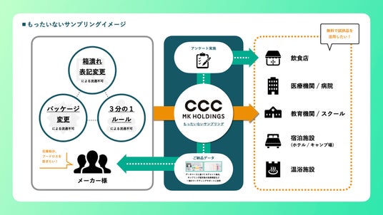 CCCMKホールディングス株式会社(本社:東京都渋谷区、代表取締役社長 兼 CEO:高橋 誉則、以下「CCCMKHD」)は、このたび、商品の廃棄ロス削減に向けた新たなサンプリングパック「もったいないサンプリング」の提供を開始しましたのでお知らせいたします。