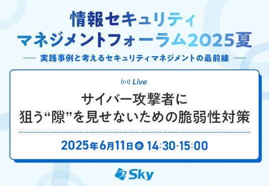 Sky株式会社は、2025年6月11日(水)にオンラインで開催される、リバイバル・マネジメント・フォーラム事務局主催のセミナーイベント「情報セキュリティマネジメントフォーラム2025夏」に協賛いたします。