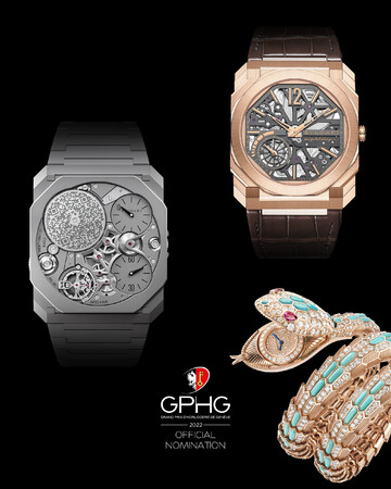 ブルガリからは3つのウォッチがノミネートされました。わずか1.8mmの薄さでひとびとに驚きを与えた「オクト フィニッシモ ウルトラ」、ムーブメントの小型化と卓越したジュエラーの技術の融合「セルペンティ ミステリオーシ ハイジュエリー シークレット ウォッチ」、美しい幾何学的なラインとロングパワーリザーブを実現した「オクト フィニッシモ スケルトン 8デイズ」。いずれにおいても、ブルガリの高いウォッチメイキング技術とジュエラーとしての芸術性を融合、拡大する力が存分に発揮されています。