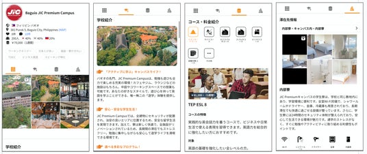 ネイティブキャンプ留学では、ユーザーが必要な情報を分かりやすく把握できるよう、常に丁寧で明確な情報提供を心がけています。JICの詳細情報は、以下の4つのカテゴリーに分けて掲載しており、知りたい情報を的確にお届けします。