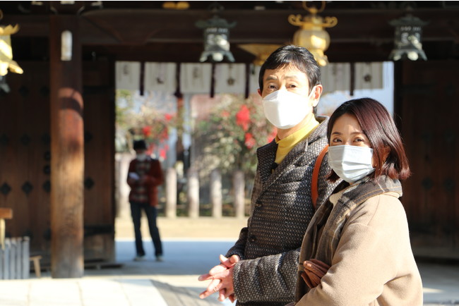 旅のお相手は小塚舞子。二人はまず梅の名所として知られる北野天満宮へ。