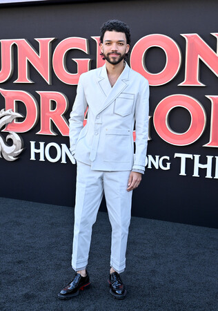 3月26日にロサンゼルスで開催された、映画『ダンジョンズ&ドラゴンズ/アウトローたちの誇り』のプレミアに出席したジャスティス・スミス。キム・ジョーンズによる2023年サマー メンズ コレクションより、カフスと胸ポケットにオーガンザのディテールが施されたホワイトコットンキャンバスのワークウェアジャケットと、同じく裾とポケットにオーガンザのディテールが施されたホワイトコットンキャンバスのワークウェアパンツを纏い登場しました。
