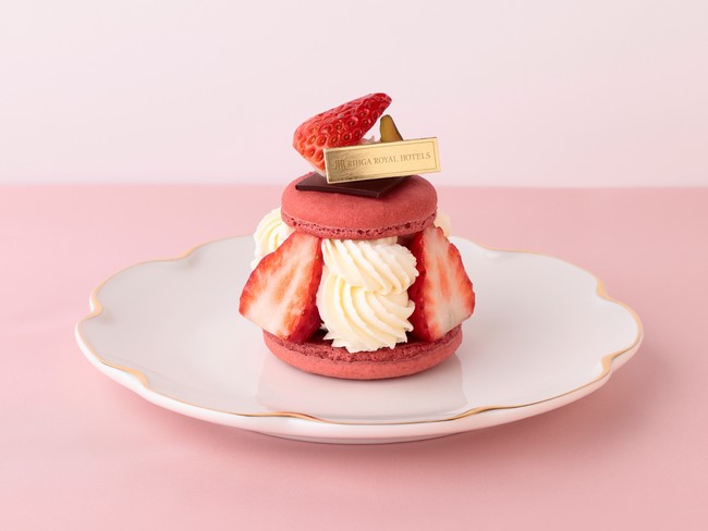いちごは「紅ほっぺ」を使用。ゆず風味のホワイトチョコクリームの中にいちごジュレを閉じ込め、チョコ味のマカロンでサンドし、いちごをデコレーション。見た目にも可愛らしいスイーツです。