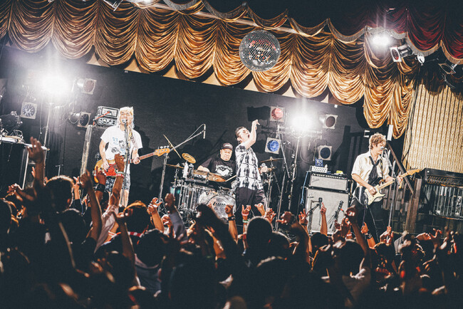 「よく来たぁ!」。開口一番増子直純が口にするセリフだが、景気のいいオープニング数曲が終わるまでに同じセリフが4回も出ていたのは、数日前に『新型コロナウイルス感染拡大予防ガイドライン』が改定されたことも大きいだろう。条件付きとはいえ、声出しOK、コール&レスポンスも4割くらいOK。「酒燃料爆進曲」や「GREAT NUMBER」など、合いの手と身振り手振りがモノをいう曲の盛り上がりが凄まじい。4曲目、「ジャカジャーン!ブンブン!ドンドコ!イエー!」が終わる頃、フロアとステージの呼吸はもう完璧に仕上がっていた。